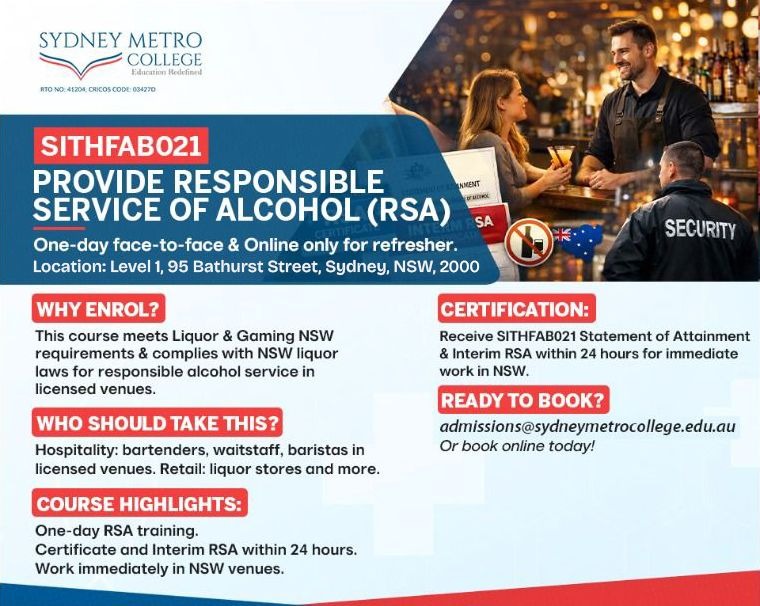 Sydney Metro College (SMC) is a CRICOS-registered education provider offering high-quality vocational courses designed to equip students with industry-relevant skills. Located in Sydney and Melbourne, SMC provides a dynamic learning environment with experienced trainers, state-of-the-art facilities, and strong industry connections.
